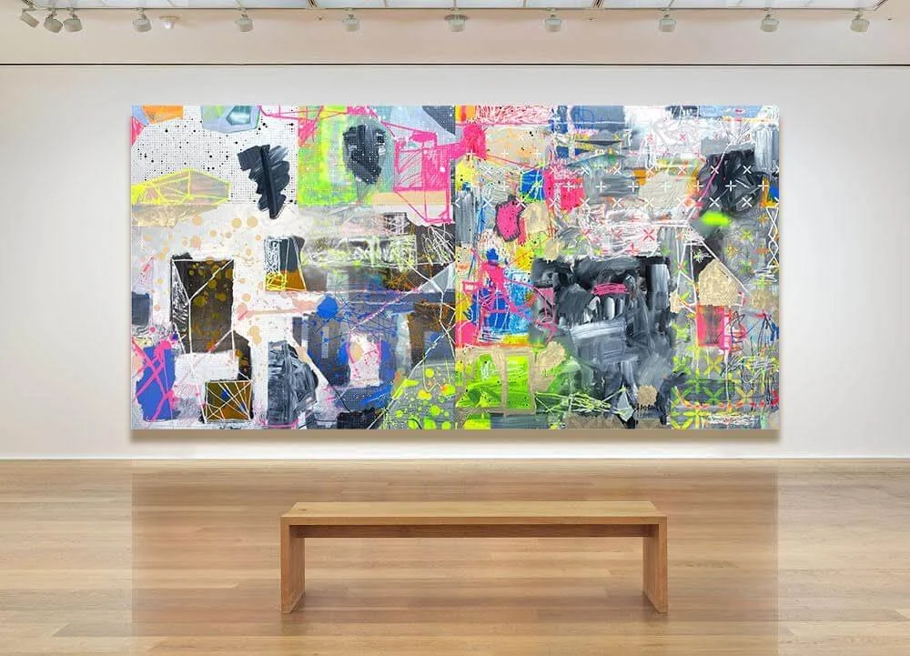 HL: Over 4 years ago, you began experimenting with digital art in your analog art practice, with a 12-foot-wide painting. From the artwork more than 4 years ago, before the mainstream release of generative AI, until now, how have the advancements in new technology influenced your artwork?
