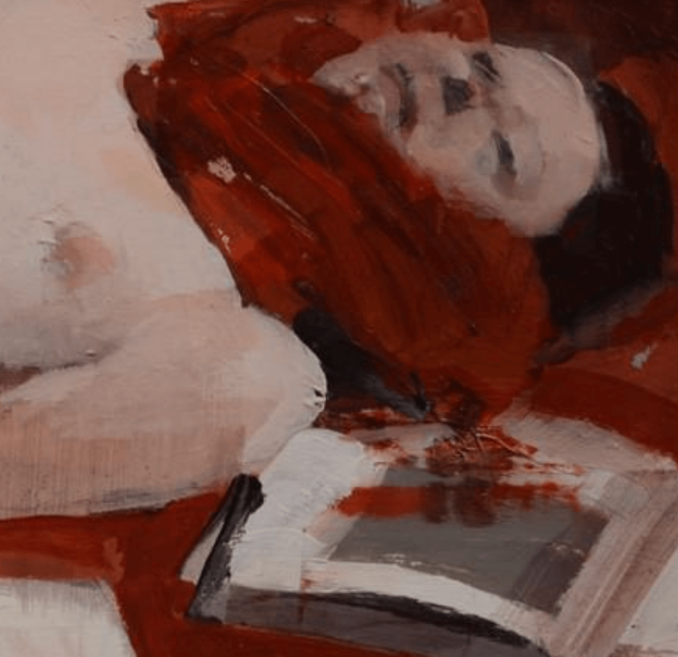 A close look at the 6 x 16 inch painting titled Art Books I (2025), oil on wood panel, reveals a nude figure at rest, surrounded by both open and closed art books. Its intimate scale immediately drew my attention among the other artworks in the exhibition. While the figure and dominant red color remain central, a distinct sense of curiosity emerges through the careful placement of the open books and their possible symbolic or thematic connections.