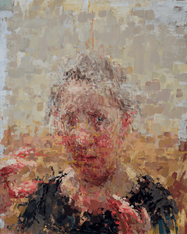 Gale doesn't need oversized canvases to create presence—there's a rhythm to how the brushwork and color are laid out that pulls your eye through the composition and draws you closer. What is it that I am seeing? From afar, a figure. As you walk closer, the image begins to dissolve into marks and color—at times you lose the subject entirely, left with what feels like pure abstract expressionism.