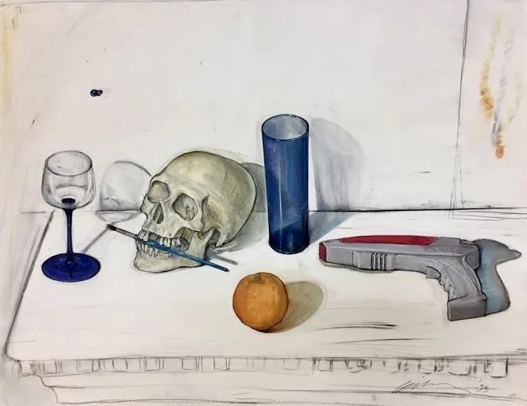 If one views the artist's craftsmanship in relation to capitalist mass production, Gibson can be viewed as a laborer in the true sense of the word. Just as a factory worker might rebel against wealthy industrialists, Gibson presents the ultimate conceit, that he paints laborer tools and sells them as fine art to persons who rarely handle these instruments. Whether intentional or not, it's a subtle critique of capitalism where the aesthetic object reappropriates currency, not paid to laborers, but to the artist worker. A collector, who perhaps has gained wealth harnessing surplus value, now seeks to own unique cultural property that appeals to their aesthetic. Mark-making is the most unalienated occupation that exists. It reaches into a primal beginning. It represents the manifestation of human desire, imagination, and expectation.