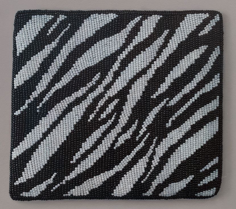 Victoria Gitman’s On Display (2010) is the smallest painting in the show, and it depicts what appears to be a beaded bag. The craftsmanship of the object depicted is so precise and impressive, yet it is doubled by the craftsmanship of the painter who depicted it in all its visual wonder. It depicts a perfectly square object made of tiny beads in two colors, rendering an organic pattern across its surface. The meticulous painting technique required for us to look at this painting and mistake it for a photograph is another bravura technical accomplishment. The concentration required to render more than a thousand beads photo-realistically on a surface smaller than 8 x 10 inches boggles the mind. Once again, there is duplicity here—is it a photograph? My G-d, that’s a painting! Issues like composition, color, and pictorial structure, which art historians employ to analyze paintings, don’t seem relevant here. It is flat and colorless and absolutely hypnotic because one gets lost in the magnificent character of the painting as an object, one which represents another object but which discloses the attention the artist devoted to seeing this thing. Like an echo, we get caught in the same process of visual discernment, but with a picture.