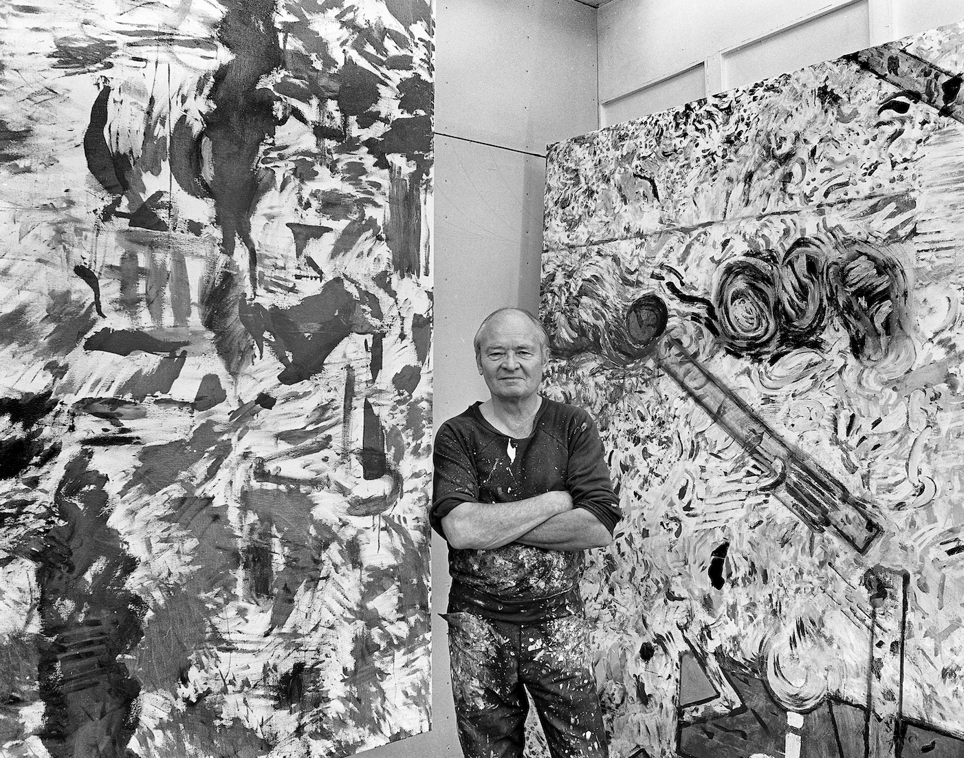 He takes this same approach to the scene in the painting Untitled (Artist and Model; Artists with Model) (1969). Three figures occupy the absolute edge of the world, focused on their work. A lone nude appears carved from the featureless room. The application lays bare all of the hours spent sketching, the shifting light, the drinks, the excitement, the fatigue.