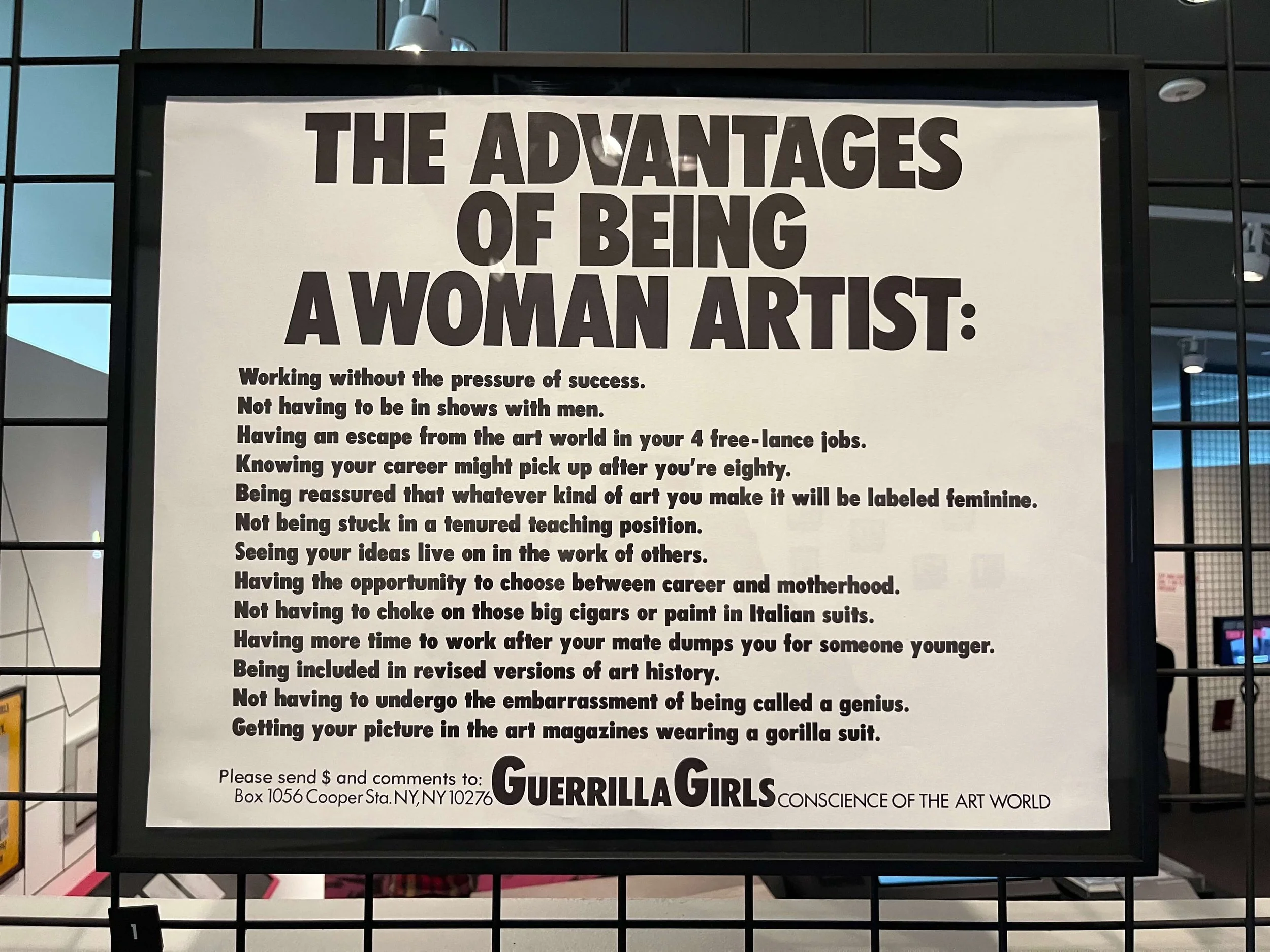 “I think that’s what the Guerrilla Girls project does,” Juarez said. “It works. It trained your eye a certain way, and then you recognized it. That kind of answers the prompt of the show: How to Be a Guerrilla Girl.”