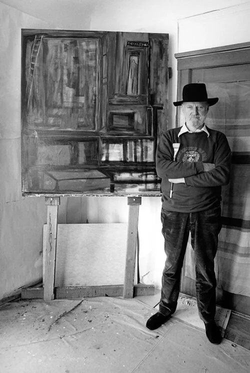 What is significant about these biographical details is that Lawrence Ferlinghetti was always painting and drawing in specific places that rooted him to San Francisco. He methodically pursued his artistic practice. It wasn’t a hobby, it was a calling. As Mauro Aprile Zanetti expressed, “Lawrence Ferlinghetti was not a ‘Sunday painter,’ unless a week would be made of 7 Sundays.” There is a direct line from his time painting and pursuing his Ph.D at the Sorbonne in the heart of Paris, to the studio he rented at the Audiffred Building, to his studio in his North Beach flat, to the light-filled studio he rented in Building 101 at the Shipyard for 40+ years until his death in 2021. That line was created by brush and pen.