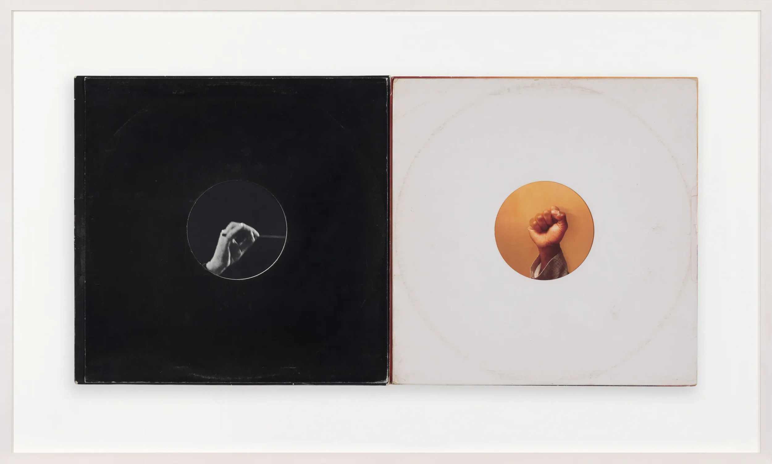 Marclay's long association with Fluxus silently hovers over. Fluxus broke down the distinction between art and life, taking ordinary materials without making them into something presumptuous and necessarily anticipated. Record sleeves were never intended for hanging on white walls. They were made to be used, worn down, and heard.