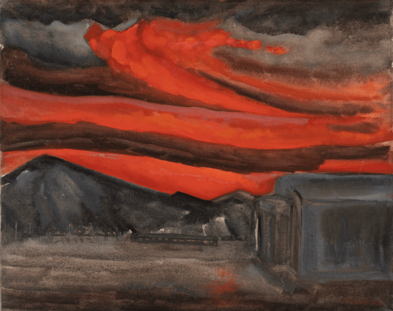Both Okubo and Hibi developed mature styles that one might not have expected from their earlier work. Hibi’s Buddhist beliefs seem to have given her detachment about her interment and lightened her art—the washes of color are now predominantly yellow, calligraphic letters, figures, and nature appear in the vapor. Given her history and training, these cannot be dismissed as decorative abstract color fields, but rather existing in the spiritual tradition of other Northwest School artists like Mark Tobey. Autumn, a large oil on canvas from 1970 in the collection of the Smithsonian Museum of Art, is a fine example of her late work.