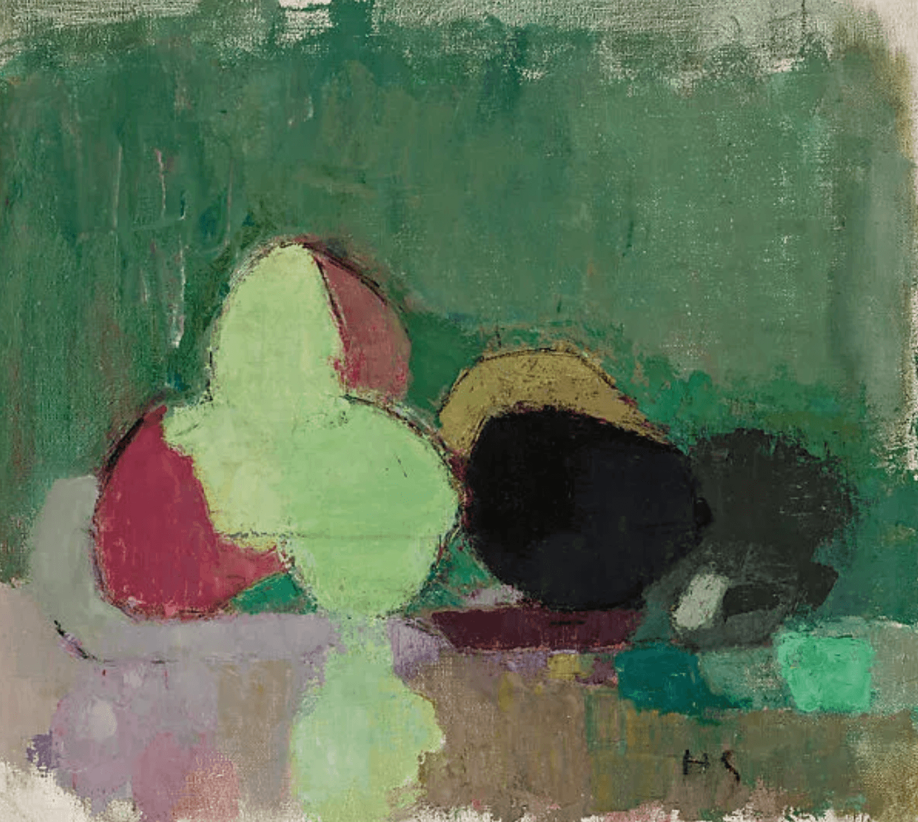 Helene Schjerfbeck (Finnish, 1862–1946), Still Life with Blackening Apples, oil on canvas, 36 × 50 cm (14 3/16 × 19 11/16 in.), 1944, Didrichsen Art Museum, Helsinki.