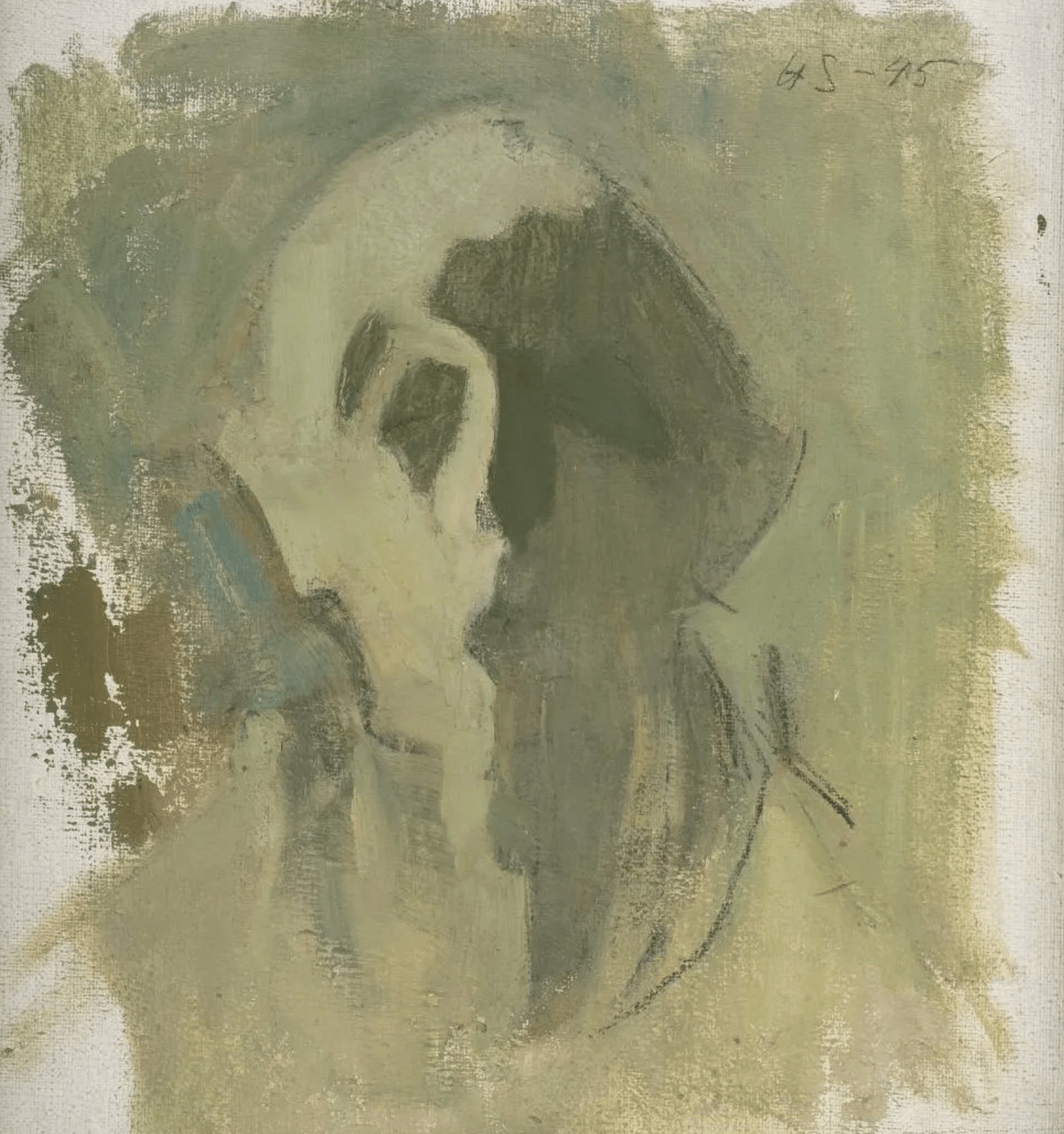 Helene Schjerfbeck (Finnish, 1862–1946), Silence, tempera and oil on canvas, 67.2 × 59.2 × 6.5 cm (26 7/16 × 23 5/16 × 2 9/16 cm), 1907, Nordea Art Foundation Finland.