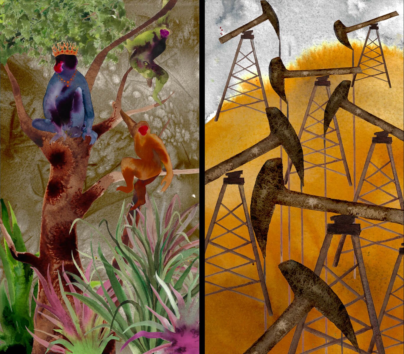 Crown of Flames asks complicated questions. A longtime professor of art at UC Davis, Ahmadi is a multidisciplinary artist who — besides making paintings and sculptured objects — has become an undeniably powerful filmmaker. Her short animation at Haines is a diptych that shows parallel worlds: on the left side, monkeys reside in a Garden of Eden-like environment where they thrive amid nature's colorful pastiche; on the right side, kids play leapfrog on brown terrain where black drilling rigs appear. Over the next five minutes, the two sides intersect in profoundly gruesome ways, with the monkeys fleeing their once-idealistic domain, which burns to the ground, for the kids' territory, where the oil wells have decimated the environment and the monkeys now swing from the rigs and paralyze the kids' movements. The characters speak no words. The most prominent sound: The soulful, stringed music of composer and instrumentalist Shahab Paranj, who gives the animation an external sorrow that brings out the story's intense animation (done with Sharad Patel, who has collaborated on Ahmadi's previous animated works).