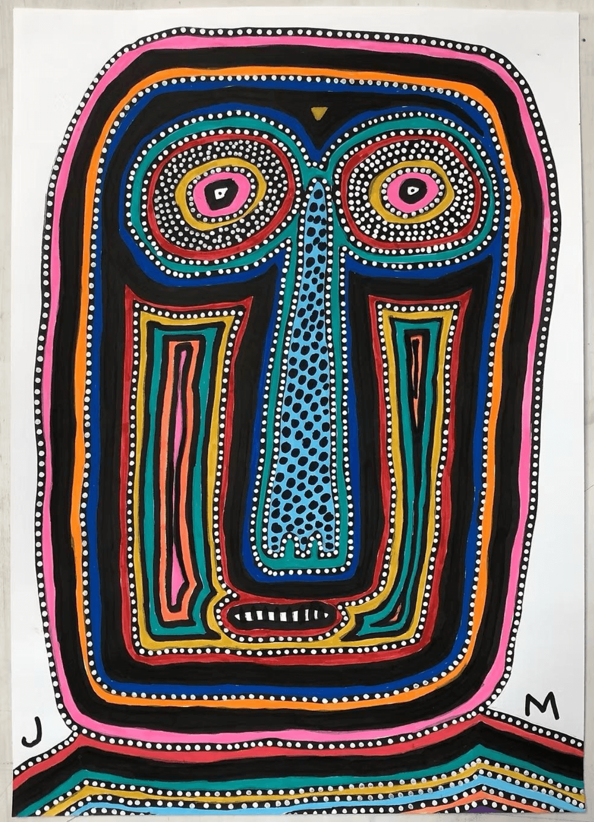 And in doing so, he created one of the most distinct and deeply human visual languages of any folk-leaning or self-taught artist in recent memory. His drawings, often built with humble materials like pens, markers, and flattened boxes, possess an astonishing clarity of character and form. At first glance they appear playful, almost naïve. Look longer and you discover an eye trained like a razor on gesture, posture, tension, and emotion. Nothing extraneous. Nothing decorative. Everything necessary.