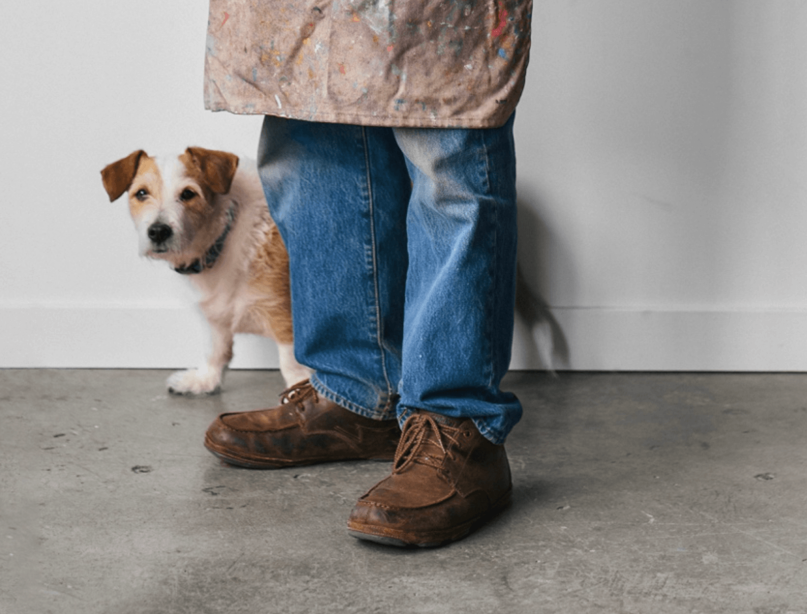 McDonnell reads the energy in the person before him with a clarity that might unnerve most of us—creating less a portrait than a visual poem. It also allows him to notice unplanned moments like this view of my shoes and my dog, Oscar.
